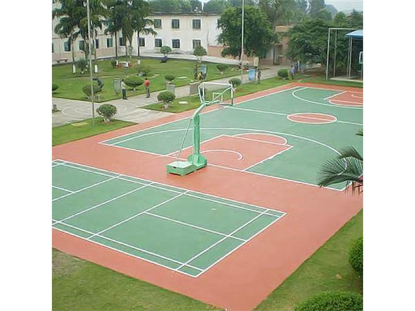 塑膠籃球場由混合聚醚、輪胎橡膠、EPDM橡膠顆粒或PU顆粒、顏料、助劑、填料組成。它具備平整度好、抗壓強(qiáng)度高、回彈性優(yōu)良、抗紫外線和抗老化能力等物理性能穩(wěn)定的特性,有利于速度和技術(shù)的發(fā)揮。